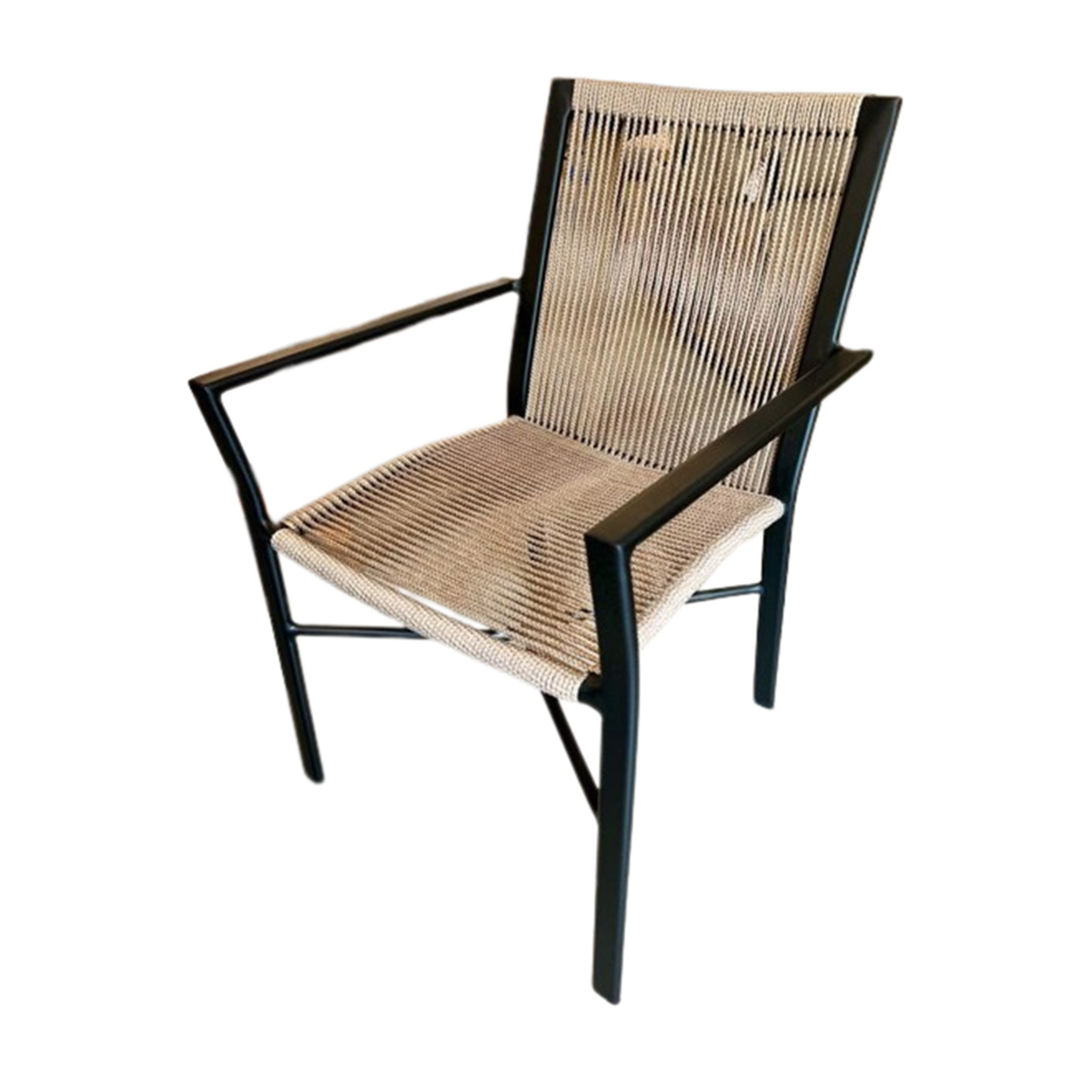 Cadeira em alumínio pintado que garante alta resistência e durabilidade, além do lindo detalhe em corda náutica no assento e encosto.