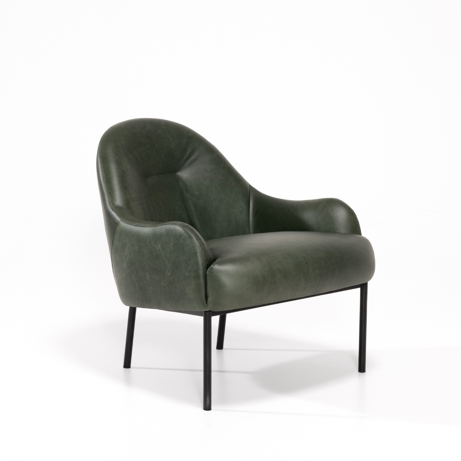Poltrona de design moderno, confeccionada 100% em couro de alta qualidade. Personalizável em diferentes tons de couro, é a escolha perfeita para adicionar elegância e aconchego ao seu ambiente.